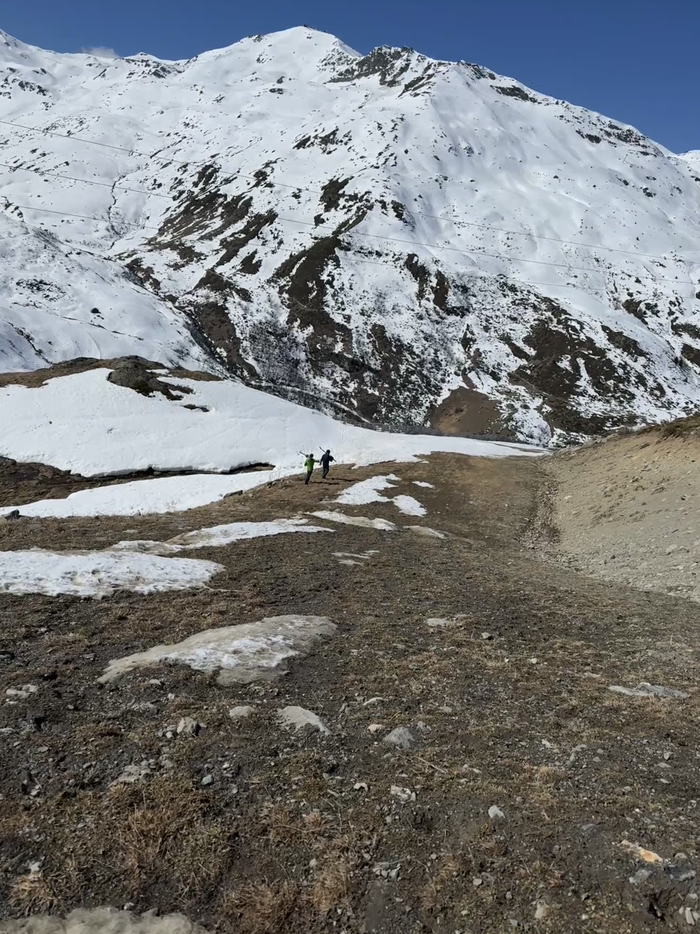 However, after just two runs, I took the wrong trail and was forced to carry my board for several hundred meters—finally making it from this side of the valley to the other one I’d intended to reach. Back in earlier times, these areas would have been covered with enough snow to glide right through without a second thought.