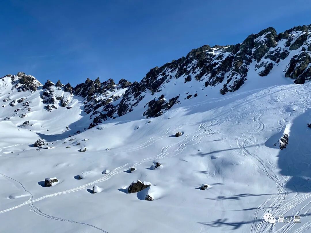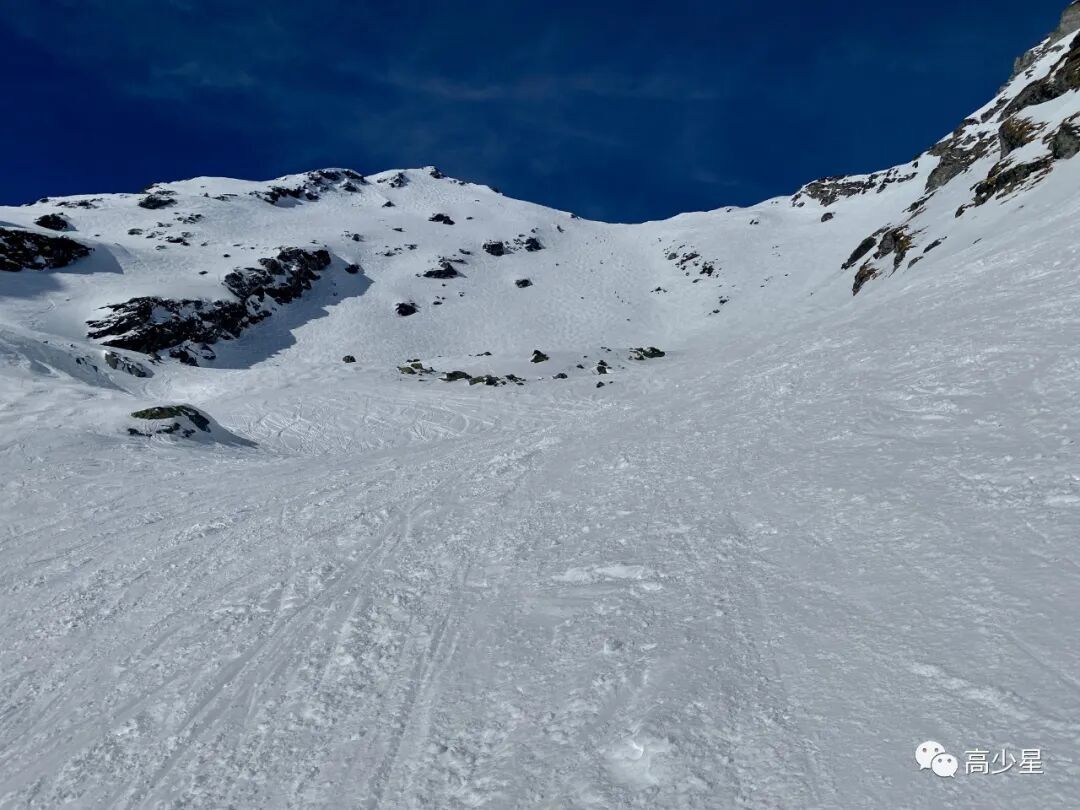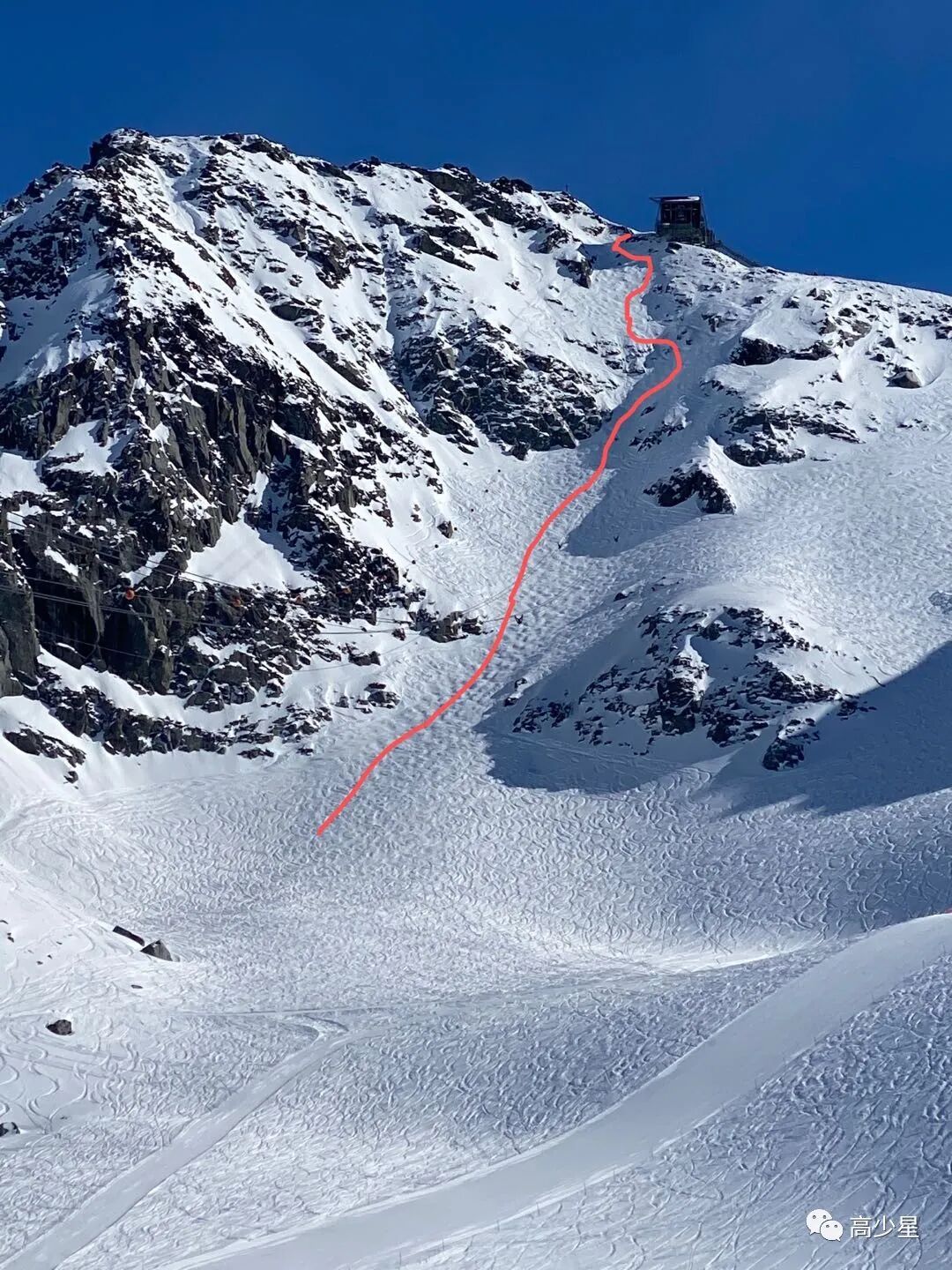 This must have been the highlight of the snow season—challenging the most thrilling off-piste run yet: incredibly steep, with hard-packed snow, jagged cliffs, and even exposed rocks. Standing there, my mind went blank, my body froze solid, my heart raced uncontrollably, and my legs felt like jelly. I was utterly paralyzed, too afraid to even move. But after gathering all the courage I could muster, I finally managed to carve out a 3-meter section right at the most perilous spot on top—and only then did I slide down. It was the first time I’d ever felt completely overwhelmed by sheer fear. In Figure 1, the red line marks the route I took. Next time, though, I’ll definitely be able to glide down it with ease!