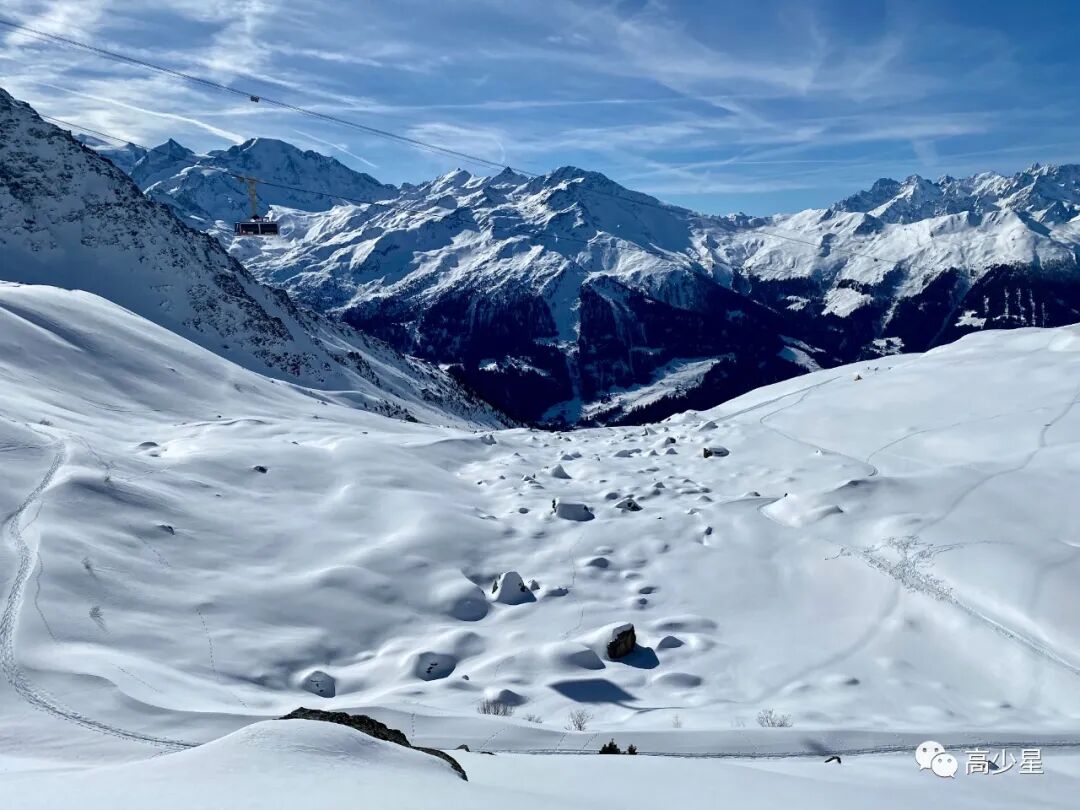 There were simply too many people skiing on the first day—each cable car line required an average wait of 20 to 30 minutes. So, when I arrived at the Mont-Fort cable car station, I immediately gave up on the idea of heading to the highest peak of the ski area and turned around to head back instead.