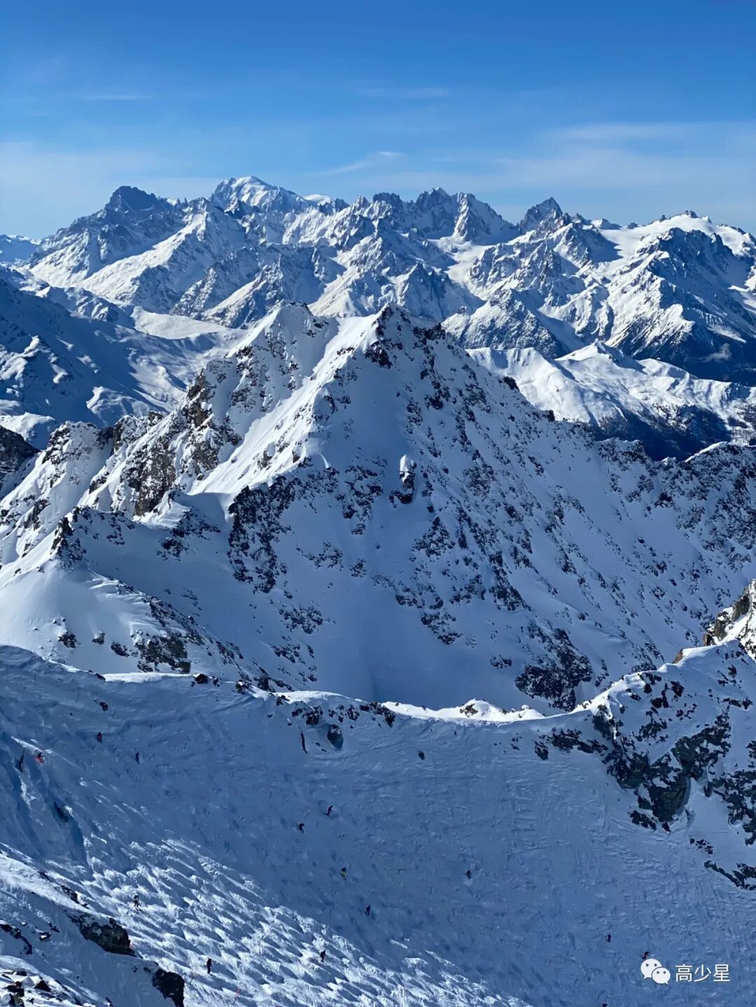 Verbier ski resort exceeded all expectations—definitely the best ski destination we’ve visited so far in Europe! It’s huge, with vast expanses of terrain that offer seamless transitions between groomed runs and backcountry areas. The diverse, challenging terrain caters perfectly to skiers of all levels. The only downside? We happened to be there during peak European holidays, so it was packed, leading to long lines and waits everywhere. In the photos: - Figures 1 and 2 show today’s favorite runs. In Figure 2, you can spot tiny figures along the edge of the mountain—those are on the long, steep off-piste trail! - Figure 3 captures the iconic long, steep run itself. - Figures 4 (on the right) and 5 reveal massive, untouched off-piste areas—but unfortunately, we didn’t have enough time to fully explore them. Stay tuned for more tomorrow!