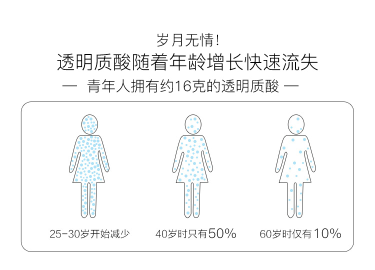 Just as synovial fluid is crucial for joints, so too is hyaluronic acid essential for joint health! One of the primary causes of cartilage damage and aging is the depletion of synovial fluid. That’s why replenishing hyaluronic acid is an indispensable step in both joint care and rehabilitation therapy. The human body is actually no stranger to hyaluronic acid—it’s a naturally occurring substance found throughout the body, classified as a high-molecular-weight polysaccharide. Healthy individuals can naturally produce hyaluronic acid, with an average of about 16 grams present in the body during youth. Hyaluronic acid levels peak in adulthood and begin to decline steadily after age 30. By age 40, only about 50% of the body’s required amount remains, and by age 60, levels drop to nearly just 10%. Joint synovial fluid, found within the joint cavity, works alongside cartilage to provide "lubrication" and "shock absorption" for the articulating bones.In addition to hyaluronic acid, proteins, and glucosamine, joint synovial fluid is predominantly composed of 94% water. The lubricating effect of synovial fluid on cartilage largely depends on the concentration of hyaluronic acid within it.At the same time, synovial fluid serves as the medium through which cartilage absorbs nutrients. Hyaluronic acid actively enhances the environment within the joint cavity, delivering essential nutrients to the cartilage with every movement while simultaneously removing metabolic waste—creating a healthy, cyclical process that supports joint health.▲ The presence and function of synovial fluid in joints(Image source: German Arthritis Treatment Center)Hyaluronic acid plays an indispensable role, primarily due to its exceptional water-retention capability. Its long molecular chains form a highly intricate, network-like structure that, thanks to this unique spatial arrangement, can effectively bind vast amounts of water. For instance, just 2% hyaluronic acid can lock in as much as 98% of the surrounding water. This remarkable ability not only helps maintain optimal hydration but also enables hyaluronic acid to create a spring-like, shock-absorbing layer within joint spaces—enhancing joint stability while ensuring even pressure distribution and reducing wear on cartilage.The rate of joint degeneration is almost synchronized with the decline in hyaluronic acid levels.This, from another perspective, highlights the importance of replenishing hyaluronic acid.