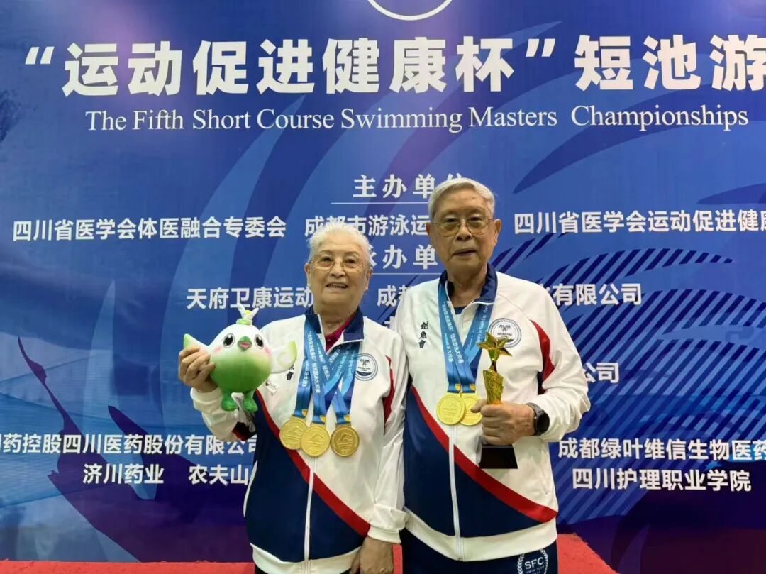 May 11From day to dayOn the 12th, hosted by the Sichuan Medical AssociationThe 5th "Sports for Health Cup" Short-Track Swimming Masters Tournament kicked off in Chengdu, drawing over 360 athletes from 18 teams representing Sichuan, Shanghai, Guangdong, and regions including Hong Kong, Macao, and Taiwan. Among the competitors, the oldest athlete is a remarkable 90-year-old—retired Chinese swimmer and sports master Mr. Qi Lieyun. Alongside his wife, 85-year-old Ms. Dai Lihua, he has collectively earned five gold medals at this year’s event.At such an advanced age, to still deliver such outstanding athletic performance—this is truly remarkable for the pool.SpousesHow was it done?