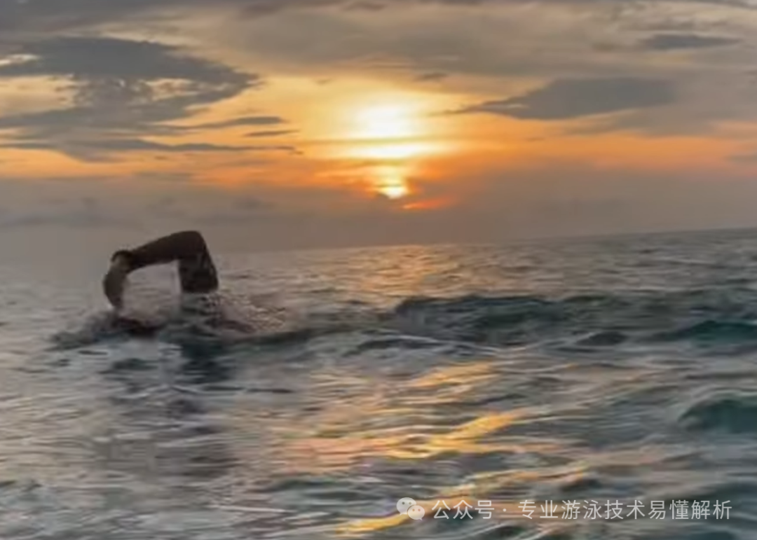 The naturally formed triangular motion of the arm during freestyle stroke immediately catches the eye—what truly matters is that the palm remains softly relaxed. Earlier in the "<*endofcontentu*>"The key to quickly mastering freestyle technique lies in four simple words: "relaxed and effortless."The article specifically highlights the importance of letting go—literally, going limp. This is a crucial element in the Total Immersion swimming teaching system. When your arms glide through the water during the recovery phase, they should be completely relaxed, with your forearms hanging loosely and exerting no effort at all. This allows the natural weight of your arms to work optimally. If executed correctly, simply swinging your arms overhead can help stabilize your body—a technique that even beginners can master by gently flicking their feet, effortlessly achieving balance without needing to force or exhaust themselves trying to execute the whip kick right from the start. In fact, you can begin practicing the two-beat kick immediately, getting into the rhythm of swimming first. After some time in the water, you’ll suddenly "light up"—realizing how to effectively engage the whip kick movement with ease and precision.