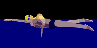 2After breaking the water, the arm moves forward through the air, driven by the shoulder, preparing to enter the water. Typically, the arm movement is performed in a low, horizontal, and relaxed posture, sweeping outward from both sides.
