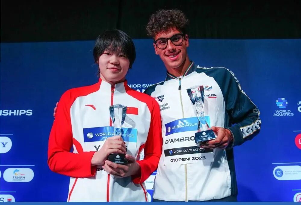 The Chinese swimming team achieved three major breakthroughs: Yang Peiqi became the first Chinese athlete to win the tournament’s MVP award; the Chinese women’s 4x200m freestyle relay team claimed gold, securing the nation’s first-ever relay medal at the World Junior Championships; and all athletes who competed in the three women’s relay events—4x200m freestyle, 4x100m freestyle, and 4x100m medley—finished on the podium.