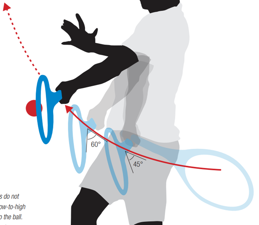 Until I came across a book titled "Tennis Science," where the author, discussing the creation of topspin, noted: "Initially, the swing is at 45°, gradually increasing this angle to 60° just before impact."