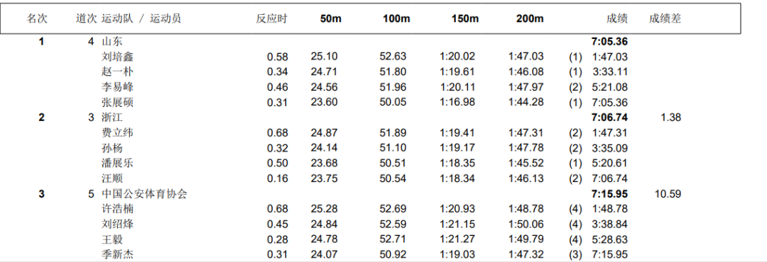 - 0–400 meters: Shandong team grabs an early lead, with Zhao Yipu delivering a stunning performance in the second leg, clocking 1:46.08 and taking a 1.98-second lead over Zhejiang at the 400-meter mark.