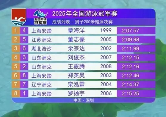 Day 5 of the 2025 National Swimming Championships: 12-year-old Yu Zidi wins the 200m butterfly, capturing global attention in the swimming world; meanwhile, 31-year-old Wang Shun claims the 200m individual medley title, clocking the fifth-fastest time ever recorded.