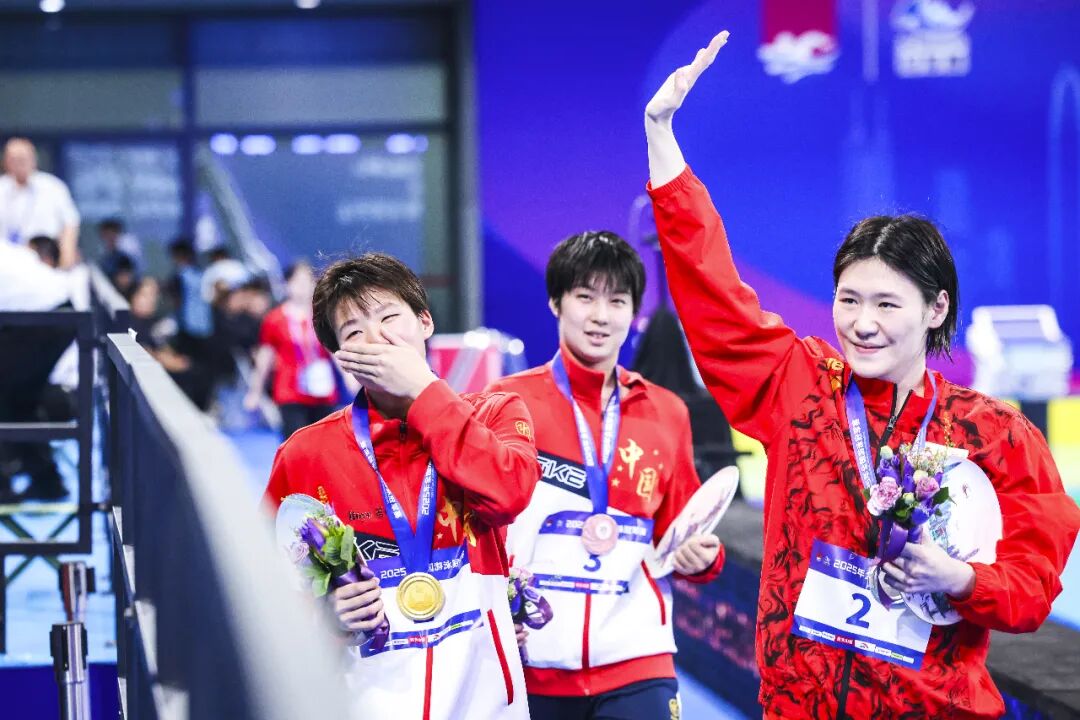 In the women's 100m freestyle final, Wu Qingfeng claimed the gold medal with a time of 53.27 seconds, while Cheng Yujie finished second in 53.35 seconds, and Yu Yiting took home the bronze with 54.31 seconds. Notably, both Wu Qingfeng and Cheng Yujie achieved the World Championships A-standard time of 54.25 seconds.
