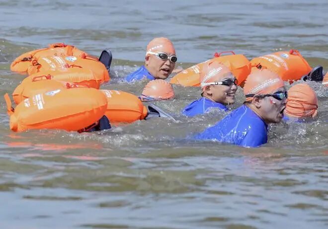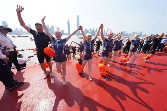 As the mighty Yangtze River surges forward with towering waves, rescue and medical vessels circle the river, vigilantly ensuring the safety of every swimmer. The breathtaking spectacle of thousands paddling in unison—27 teams racing side by side across the water—highlights Wuhan’s vibrant energy as a thriving riverside city. Amidst the roaring cheers and encouragement from both banks, all members of the 27 teams successfully reached the shore. Their faces beamed with pride and determination, as they stepped together onto land, their shared triumph igniting the entire crowd with the exhilarating spirit of conquering the Yangtze.