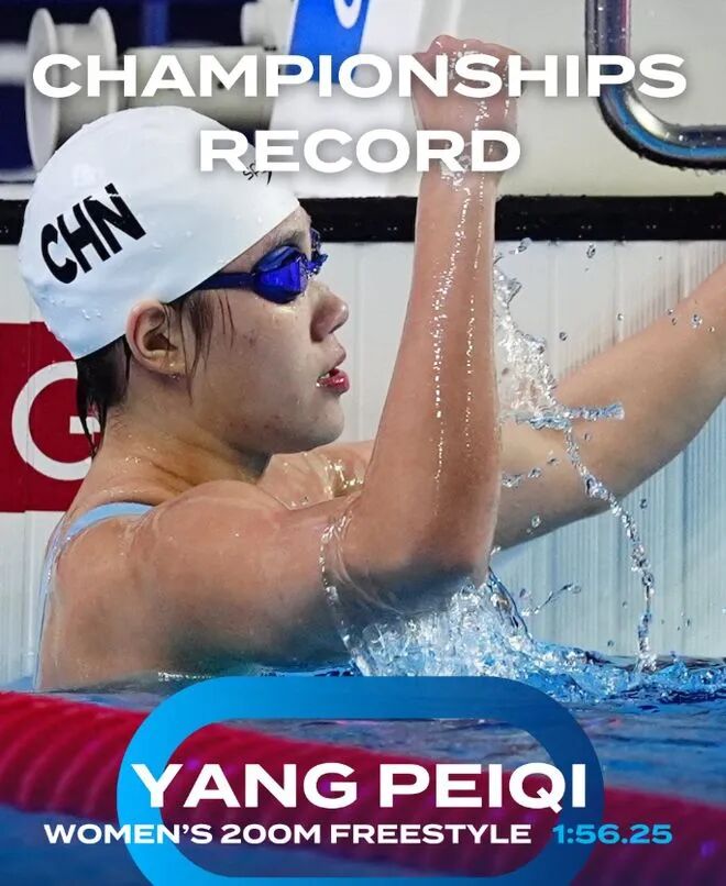 Early on the morning of August 25, Beijing time, all events of the 2025 World Junior Swimming Championships concluded in Otopeni, Romania. Chinese swimmer Yang Peiqi clinched the gold medal in the women’s 200m freestyle, setting a new meet record with her personal best time of 1:56.25.
