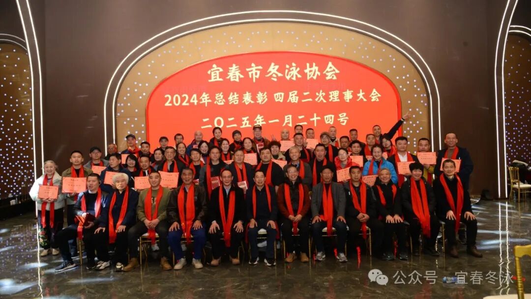 On January 24, 2025, the Yichun City Winter Swimming Association held its 2024 Work Summary and Awards Ceremony, along with the Second Session of its Fourth Board of Directors, at the Mediterranean Banquet Center in Yichun City. In accordance with the spirit of Notice No. 1 (2025) issued by the General Administration of Sport of China’s Department of Mass Sports, the event also marked the official launch of the 2025 National Fitness Winter Swimming New Year Greeting Campaign.