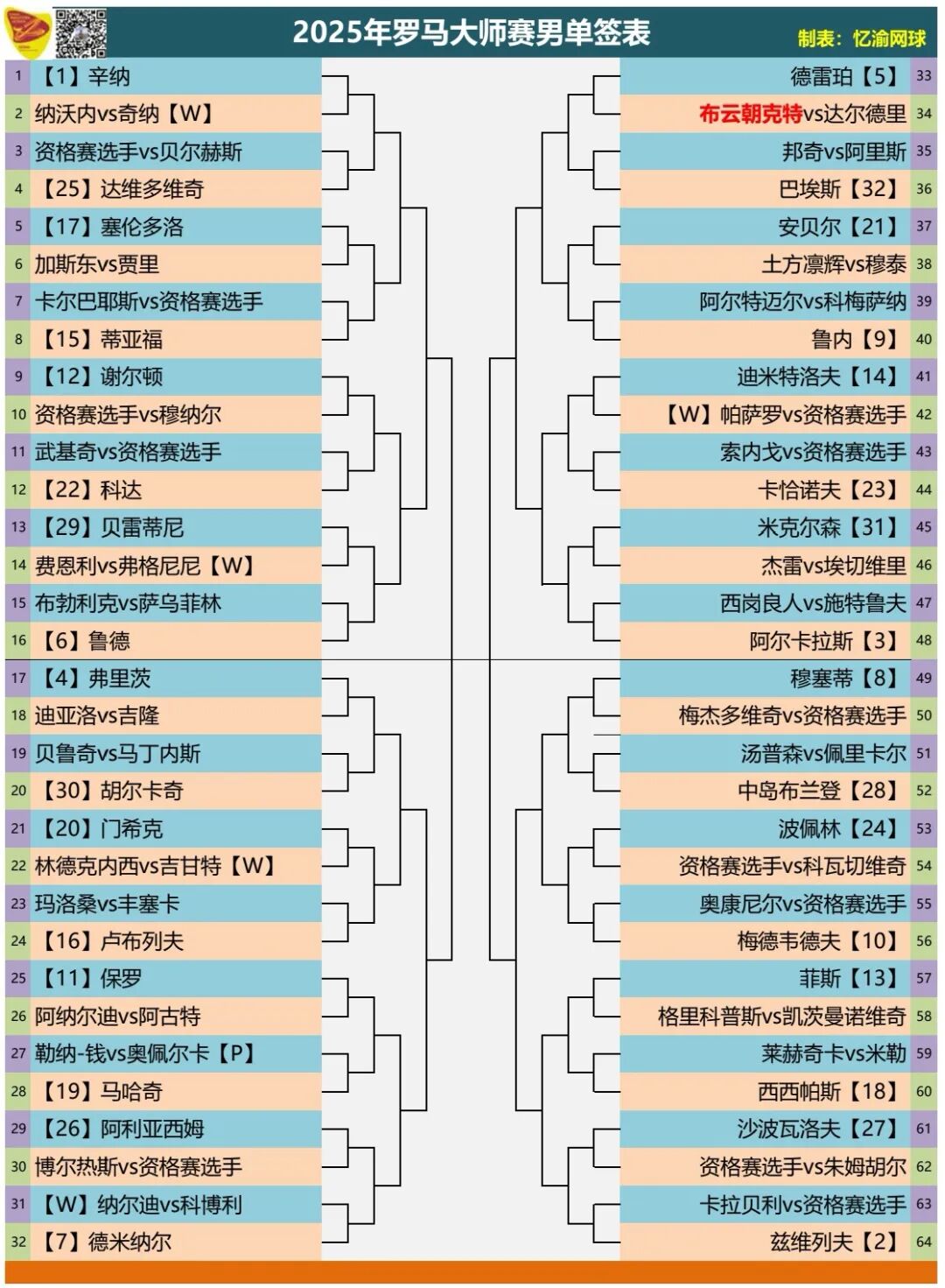As the men's and women's singles draw for the Rome Open is unveiled, the grand spectacle of tennis is about to begin. Whether it’s the fierce battle among male contenders or the vibrant competition among female stars, fans are already buzzing with excitement.